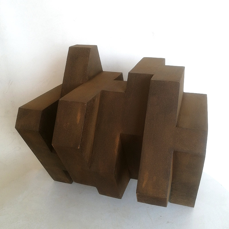 Pieza que requiere una estrategia de montaje para realizar las soldaduras ocultas y permitir el acabado externo. Realizada en chapa de acero corten de 2 mm.